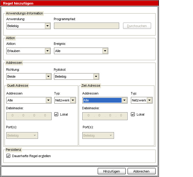 ich hätte gern gewußt, welche Regel ich erstellen muß, um auf die eigenen Rechner im lokalen Netz zugreifen zu können.