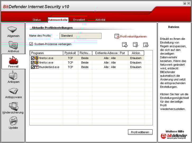 Offnen Sie bitte die Konsole von Bitdefender, Modul