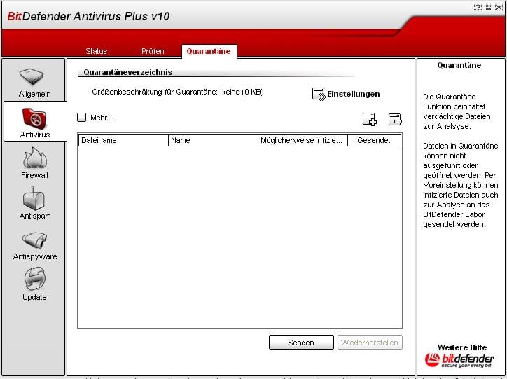 "AntiVirus" und dort das Untermenue "Quarantaine".