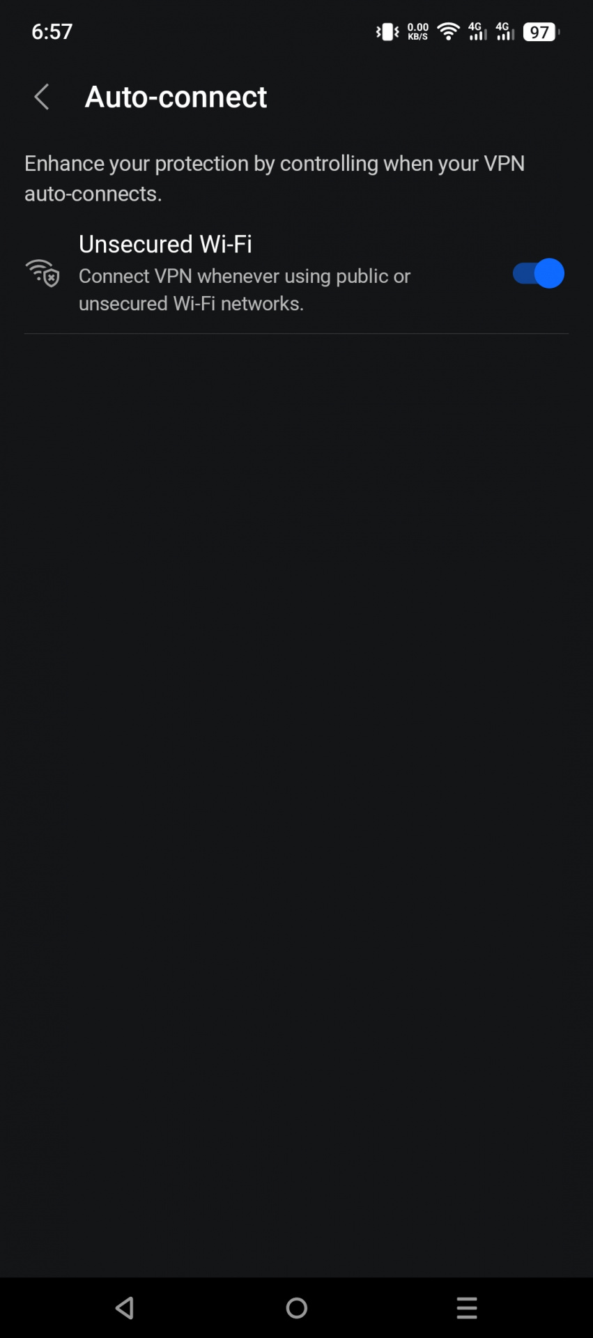 The vpn asked me to allow location permission ( all the time ) to let check weather i m connecting to unsecured wifi network or public network, but it did not switched on location as express vpn did ( to consume my battery 🤪. Why? N how will it check then ?.