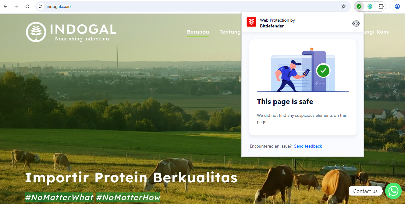 Also, there is no detection by the Bitdefender TrafficLight web browser extension either. Below is the screenshot for reference: