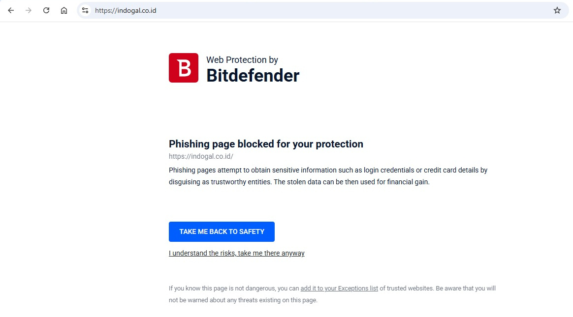 As you can see, the URL is actually detected by BD Total Security as phishing page.