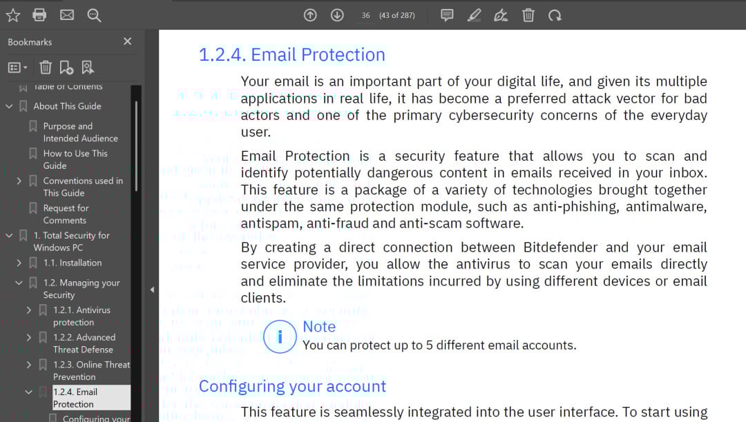 The additional Email Protection feature detects spam, malicious and phishing emails when you check your emails in a browser only, and it labels them, so you know which ones are dangerous even before opening them. It's nice to have, and a good feature, but lacking it for your email address doesn't mean that you will be less protected against threats that circulate via email, since Bitdefender offers real-time protection.