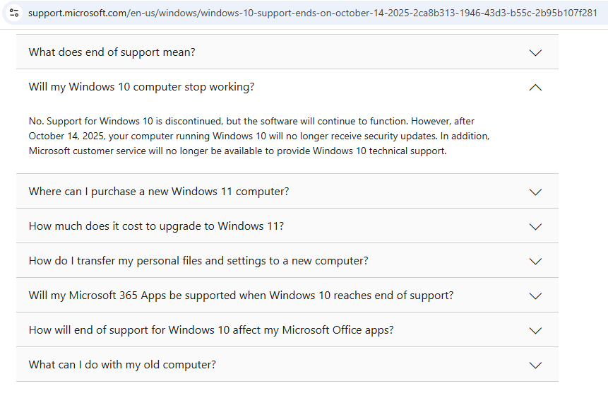 I Don't even know if I can even use this computer after Oct 14th 2025 or not. What a P off.