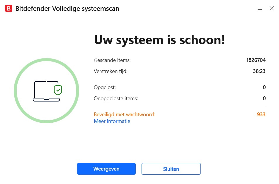 After the reinstall and fully updated windows 10 the systemscan results now are 1.7 million items scanned and only 603 password protected files. When running a custom scan the results now are 2.7 million items scanned and still 1263 password protected files.