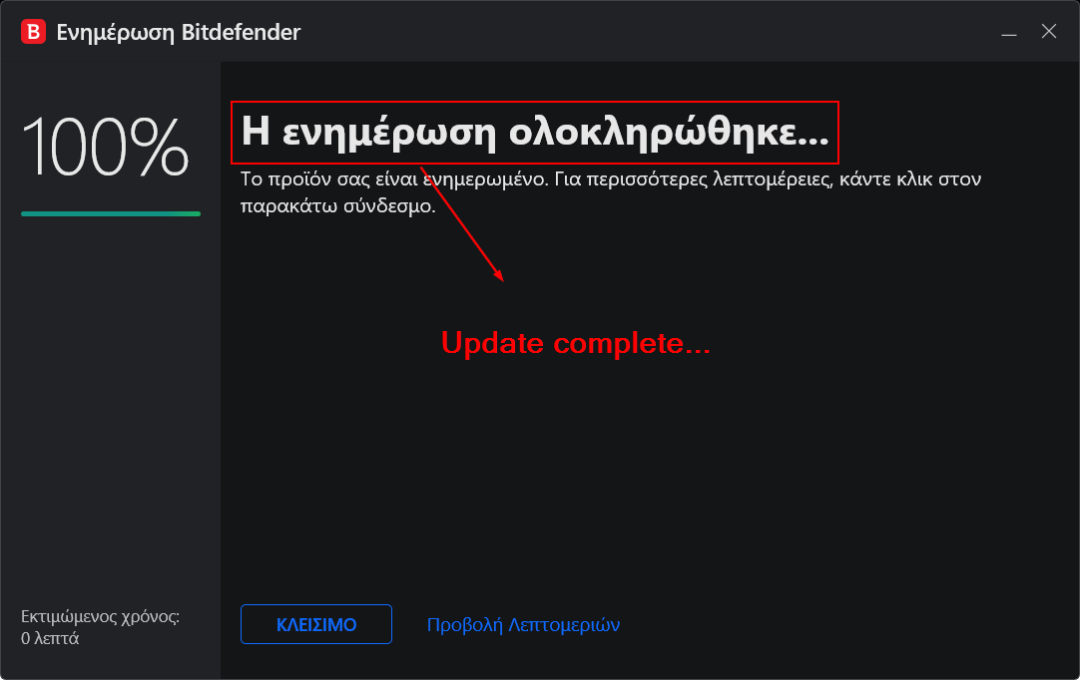 Finally, automatic updates for Bitdefender products are enabled. A manual check was performed and pending updates successfully installed, but the problem persists.