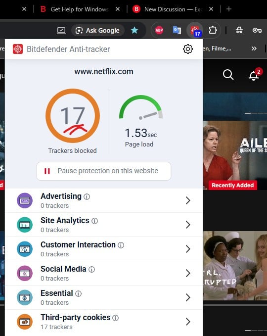Anti-Tracker Chrome extension seems to be ignoring the site exception list.