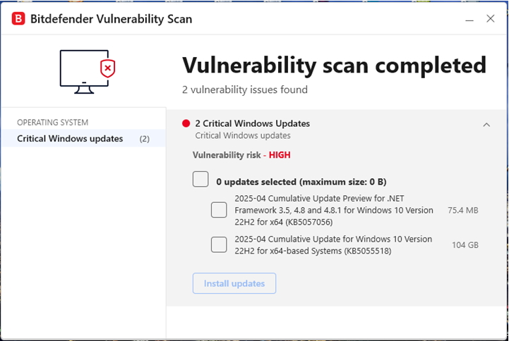 Running an old Windows 10 system (updates DISABLED) with Bitdefender Premium Security (up to date) and constantly receive the following: