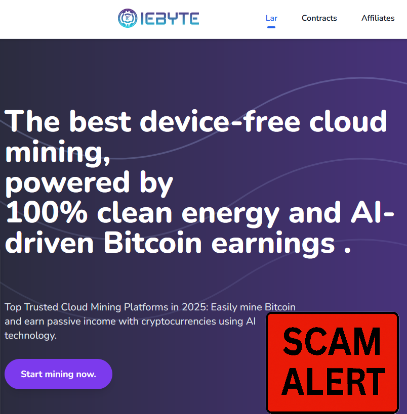 Cloud mining, scam! This site https://iebyte.com/. Don't do business with them, you will have your cryptocurrency data stolen. Even worse, you could lose your entire investment over time. Some friends who tried it can no longer make withdrawals. Be careful.