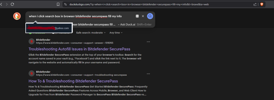 When I try to type something in browser search box, SecurePass brings to front a pop-up (in fact there are two on top of each other) with my info. I don't want to search for my personal info in browser. How can I stop it from appearing?