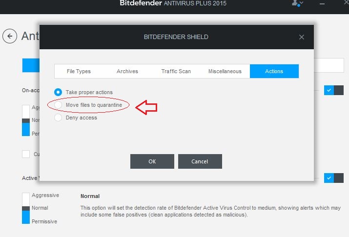 I've been using Bitdefender for many years. Recently installed Internet Security 2015, and it appears that-- upon detection of a virus-- there is no "actions to take" option to ASK what to do. Am I wrong about that?? In previous versions of Bitdefender, one of the options was always to ASK what should be done.