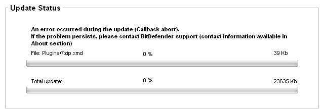 Can anyone help me please i can't update my version of Bitdefender security2008 comes up with an error file: Plugins/7zip.xmd