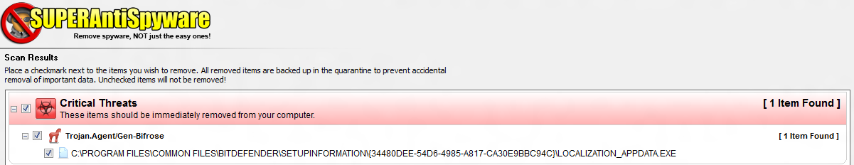 Die fehlerkannte Datei ist kein Virus, sondern eine Falschmeldung von SUPERAntiSpyware.