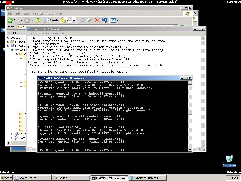 8) Type: expand SENS.DL_ c:\windows\systems32\sens.dll