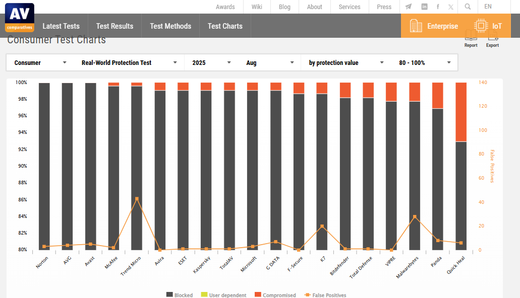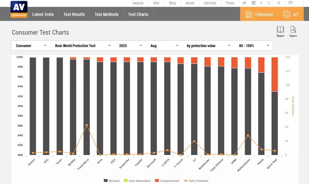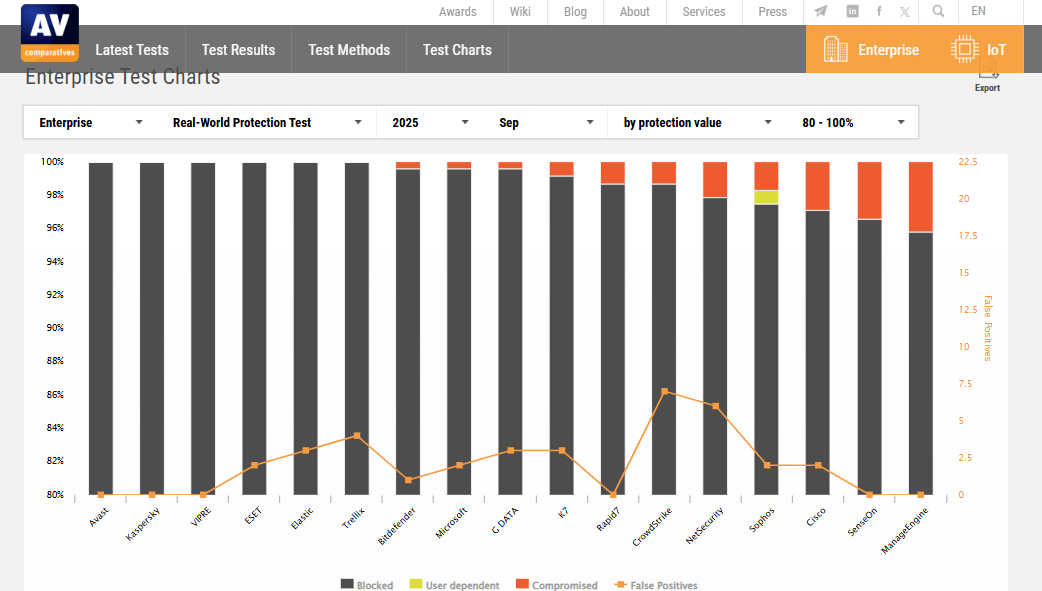 Antimalware Test Results from Leading Agencies: AV-Test, AV-Comparatives, MRG Effitas, Virus Bulletin, and more.