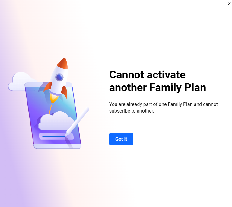 I used to have a family subscription, and I bought the improved one, but now that it has expired, it tells me that I am already on another one ,it will not let me have the new one. What should I do?