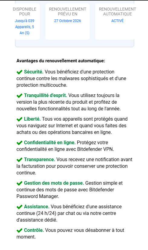 j'avais total security et password manager. Abonnement terminé. Alors je me réabonne à total security qui inclut securepass. Mais que vois-je dans bitdefender central, on m'offre password manager que j'aime bien et pourtant je croyais que bitdefender avait mis fin à cet utilitaire.
