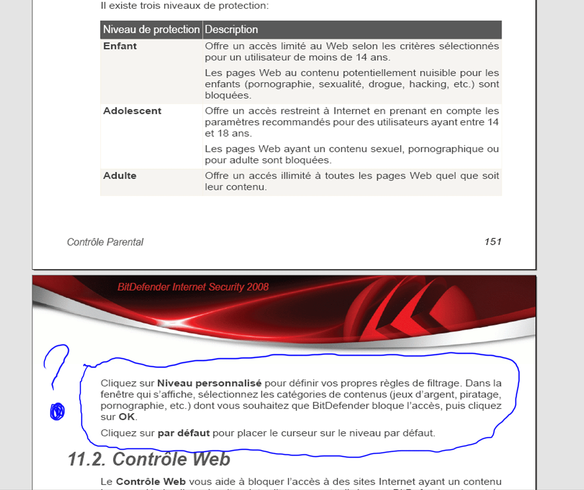 Mais sur le parramaitre du controle parental, il n'existe que le bouton "par défaut", il n'y a pas de bouton "niveau personnalisé".