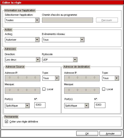 Mais, alors que le port UDP 5353 doit être accessible, je continue à avoir des problèmes. Le log du part feu me donne systématiquement les lignes suivantes :