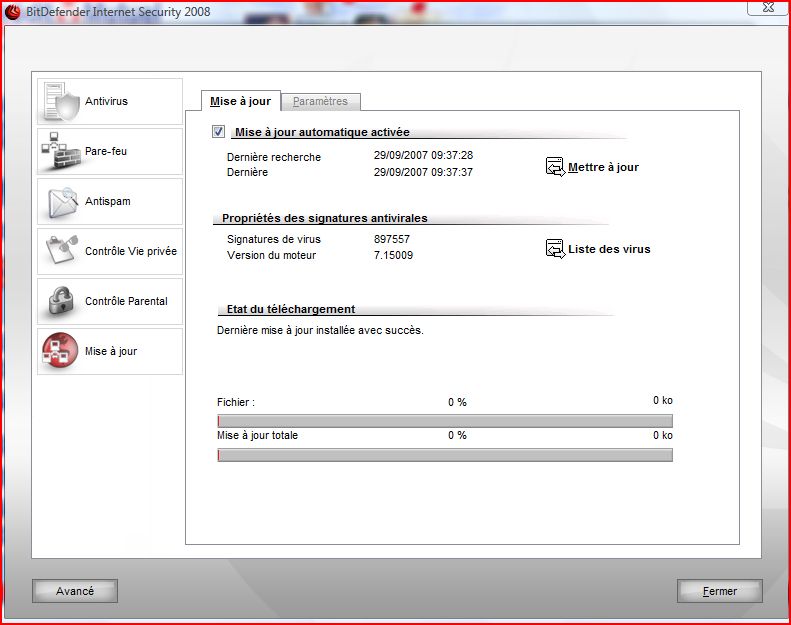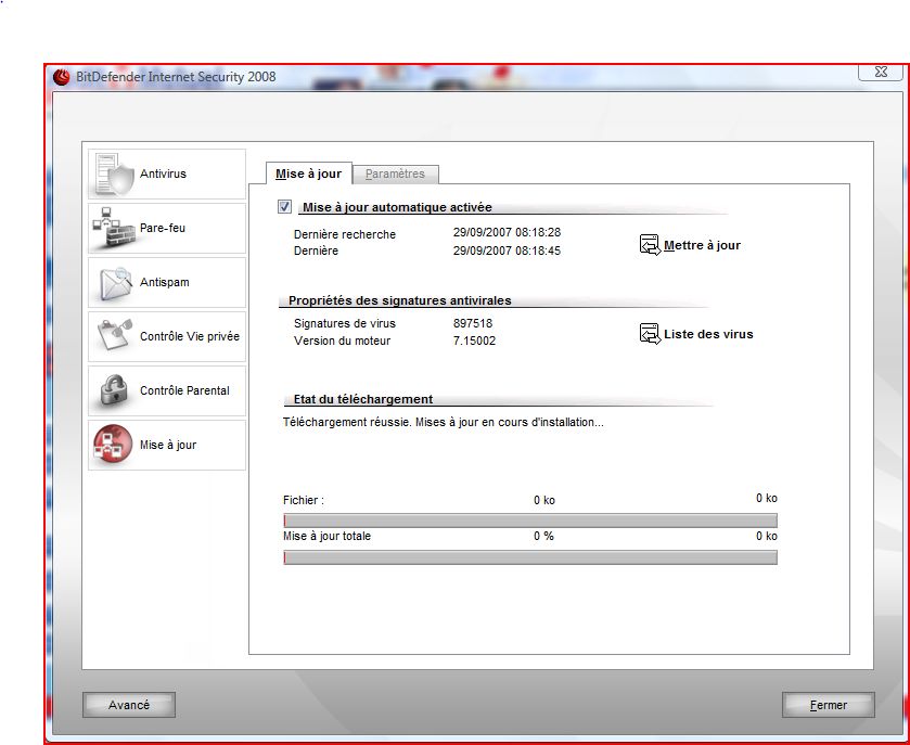 voilà ! c'est la 2eme fois que avec is 2008 v11.0.11 sous xp sp2 et ie7 que la maj automatique se bloque ! il est dit que "telechargement a réussi et en cours d'install" mais même 1 heure après plus rien ne se passe ! il faut que je refasse une maj manuelle pour que la maj automatique reprenne ! cela c'est produit à 2 reprise en 3 jours !