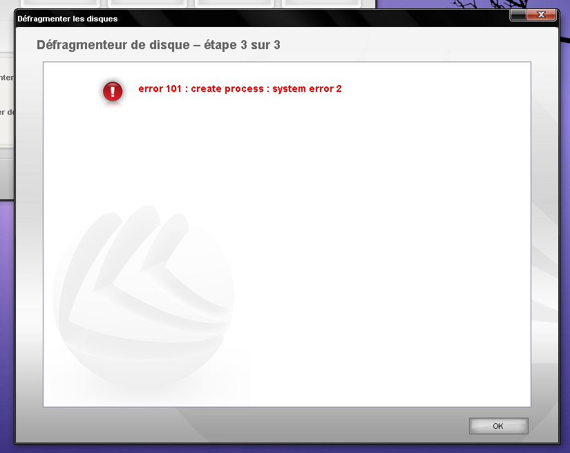 ayant acquérit BTS 2008 j'ai constalé que la défragmenation ne fonctionne pas j'ai un message d'erreur voir image jointe .