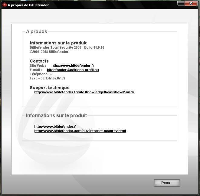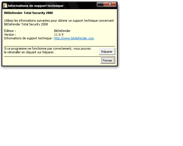 Dans "Panneau de configuration / Ajout ou suppression de programmes", apparaît la version de la première installation, dans mon cas 11.0.13. Lorsque l'on fait un clic gauche sur l'icone BitDefender dans la barre de tâche à droite, puis un clic sur "A propos", apparaît la version en cours, pour ma part 11.0.15.
