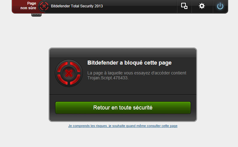 Faites moi parvenir une copie d'écran qui montre cette détection (où je pourrais voir l'adresse du site visité) car je n'ai aucune alerte de mon côté.