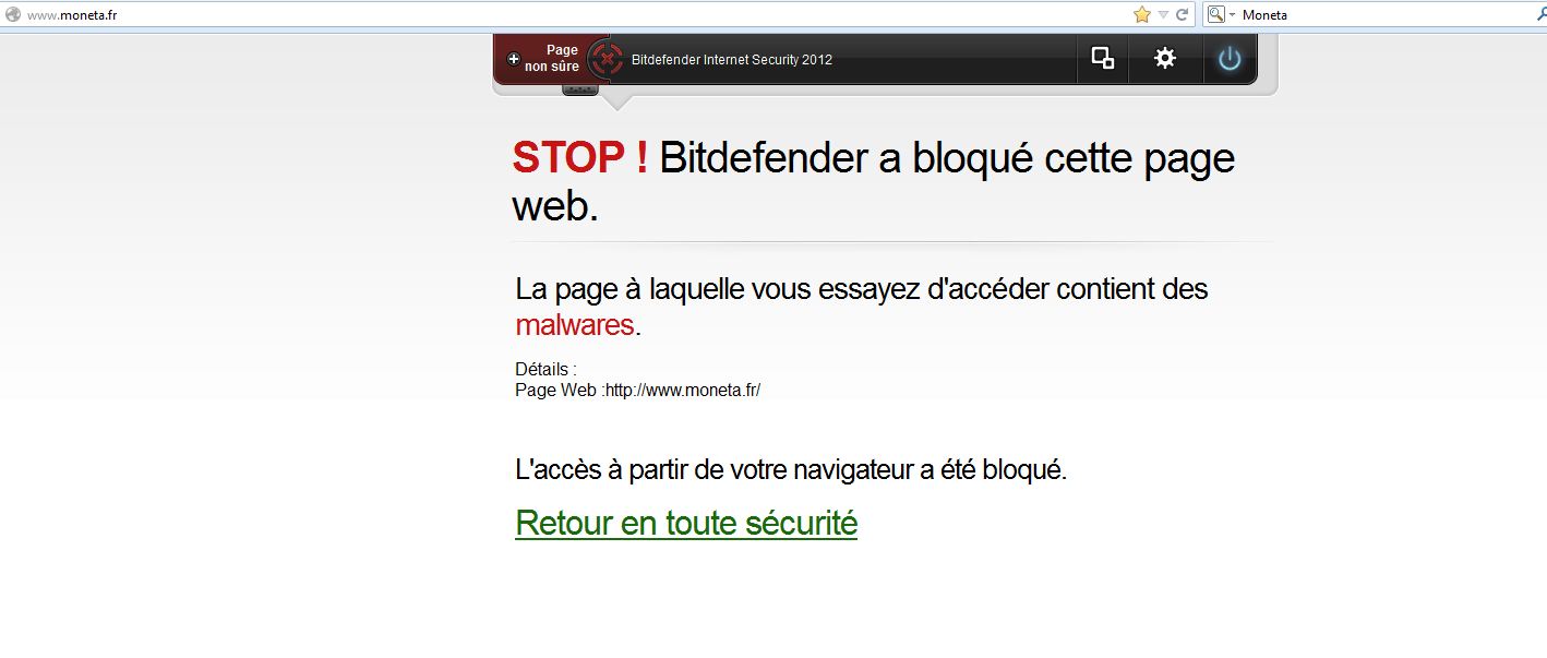 je suis développeur PHP dans une agence de communication, et l'un de nos clients vient de nous dire que l'antivurs BitDefender de l'un de ses utilisateurs detecte un malware sur son site internet. J'ai donc installé une version d'essai de BitDefender Internet Security 2012, et effectivement, celui-ci bloque l'accès au site, pour cause de malware. J'ai lancé des scans d'URL sur plusieurs scans en ligne, ils ne trouvent rien. Mon ancien anti-virus n'a rien déteté non plus, ni Malwarebytes. Je pense donc qu'il s'agit d'un faux positif.