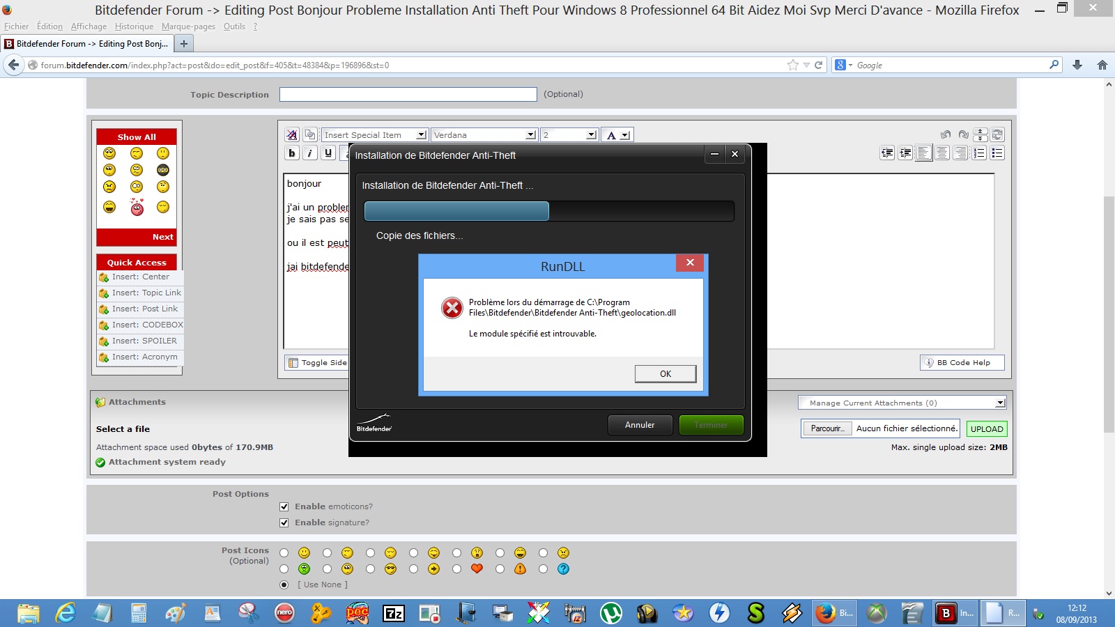 j'ai un probleme d'installation avec le logiciel anti theft il dit qul a pas su installé les fichier systemes