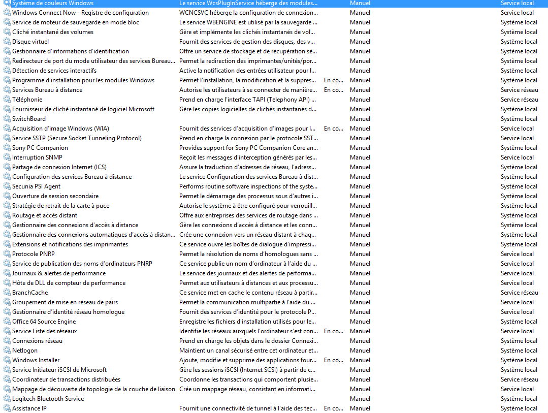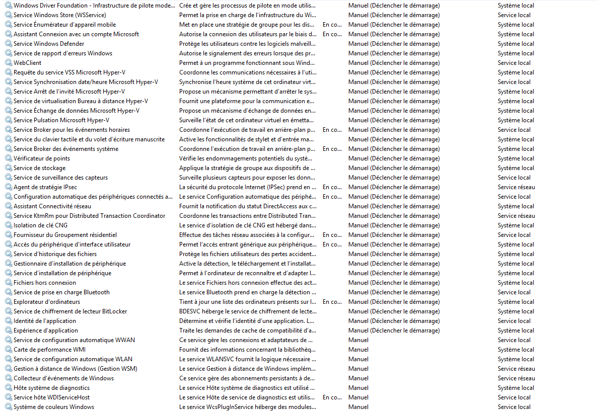 Je ne peux vous répondre pour chaque service mis en manuel, il y'a beaucoup d'interdépendances. Je vous suggère de ne rien toucher en général au niveau de services, sous peine de provoquer des dysfonctionnements système et d'applications, car vous ne pouvez pas présagez quels services seront utiles à telle fonctionnalité de Windows ou application.