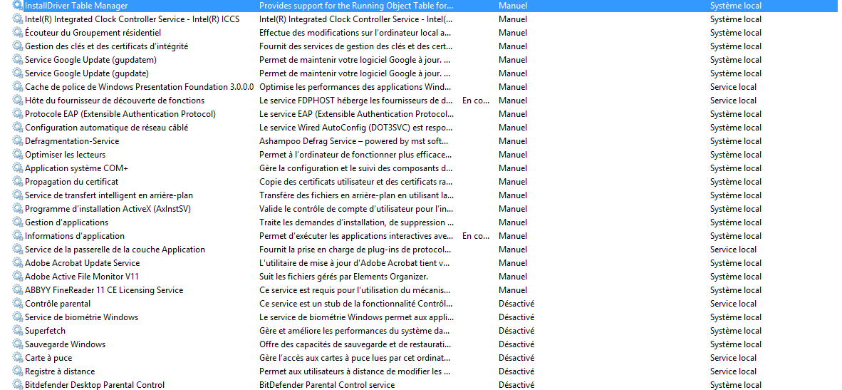 Quels services de Windows doivent être sur automatique ou manuel pour que bitdefender ne déconne pas... ?