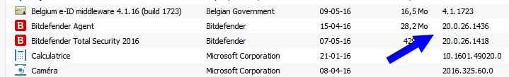 Je remarque que ma version de Bitdefender est bien la version 20.0.28.1478 mais je viens de remarquer que dans le panneau de configuration -> programmes & fonctionnalités, le numéro de version n'était pas mis à jour. Celui qui s'affiche est celui tel qu'il était lors de ma réinstallation. Ce n'est pas un gros problème en soi... Quelqu'un d'autre a le même phénomène ?