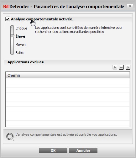 Bonjour,J'ai reproduit le dysfonctionnement, je transmets les informations nécessaires aux développeurs. Il semble que l'analyse comportementale se désactive après certaines mises à jour (pas toutes). Cordialement, Yann