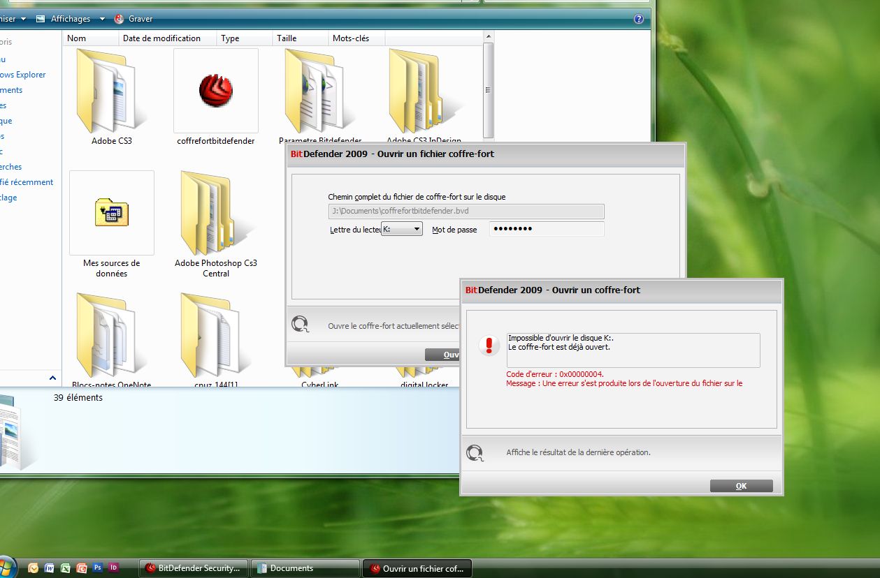Voilà une fois le coffre fort créer et formater, je souhaite l'ouvrir ce qui je pense est logique mais voilà, il refuse de s'ouvrir avec le code d'erreur suivant qui est indiquer 0x000...... Une erreur s'est produite lors de l'ouverture.