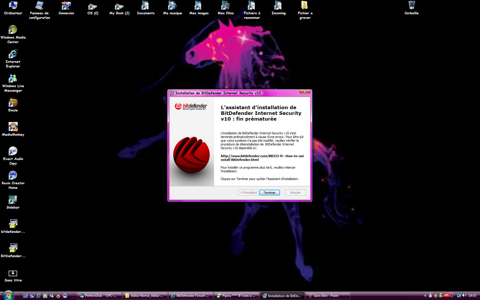 Je mets le cd ds le lecteur et voila ce qui se passe (voir pieces jointes) PAS moyen d installer bitdefender