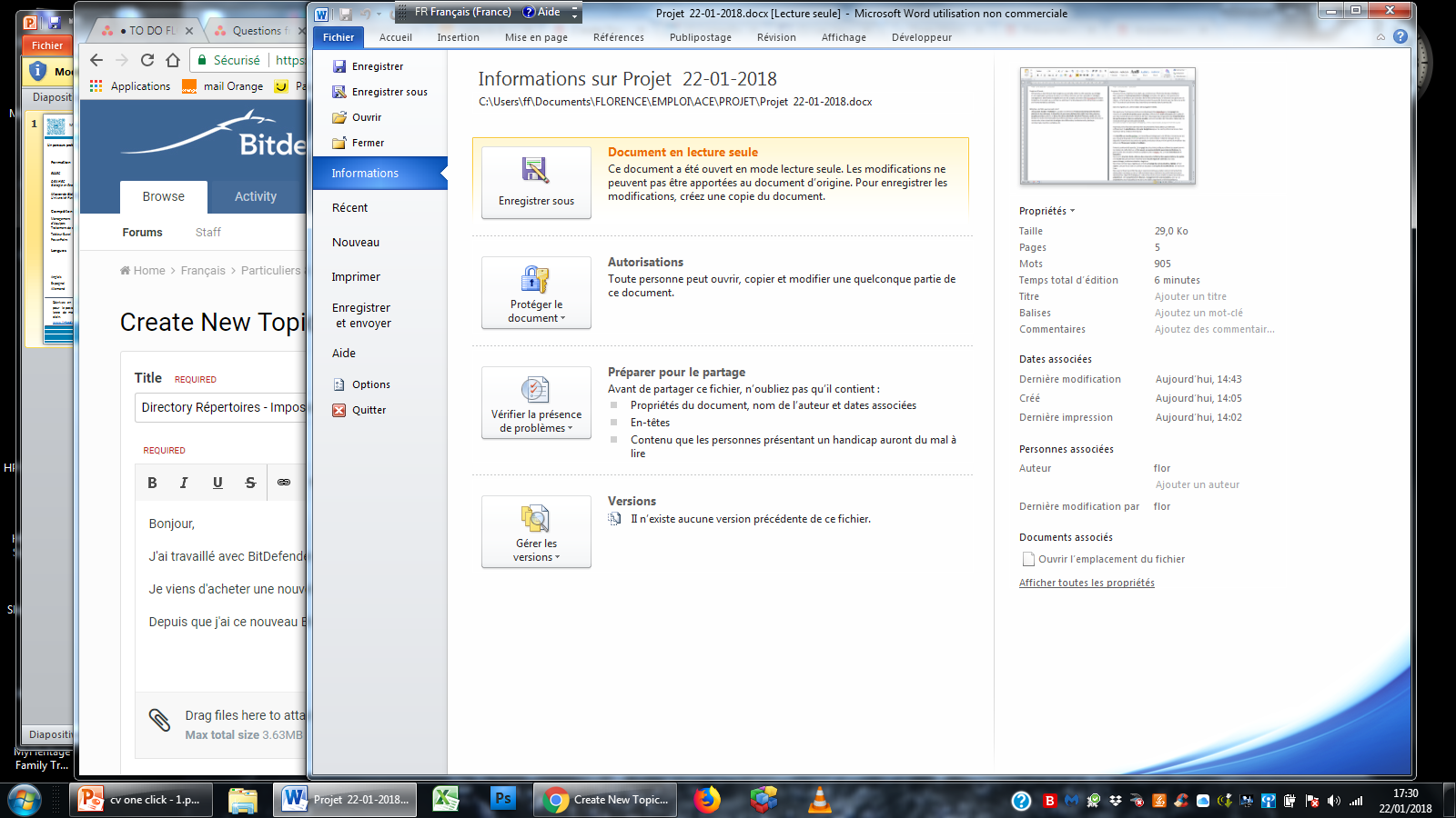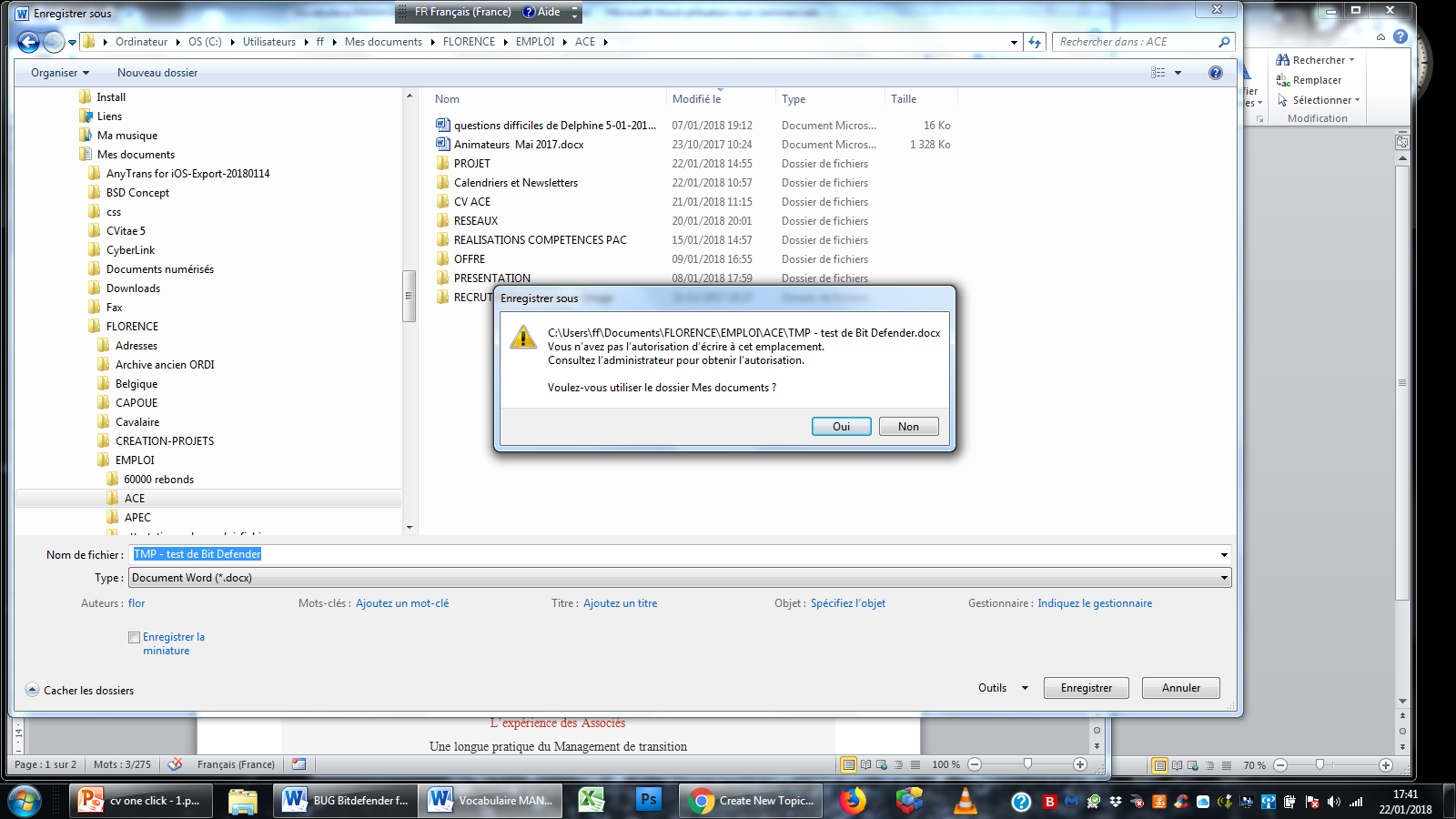 Depuis que j'ai ce nouveau Bit Defender, je n'arrive plus à enregistrer mes fichiers Word Excel et PowerPoint car ils s'affichent systématiquement en lecture seule.
